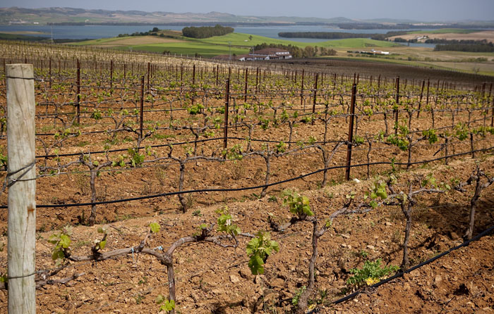 Visitar su bodega en Arcos de la Frontera, es trasladarse a un rincón de Andalucía que bien podría ser Cantabria, en palabras de Javier Luca de Tena, el director comercial de la bodega. Javier, un gallego que trabajó en bodegas de albariño, acepto la propuesta de su amigo Vicente para embarcarse en este gran proyecto de valenciano residente en Alemania. Hasta 2000 Vicente Taberner, desde pequeño ligado al mundo del vino por herencia paterna, se dedicaba a la importación de vinos españoles hasta los países de centro-Europa. A partir de este año y tras una intensa búsqueda de los terrenos apropiados para su idea de elaboración de vinos encuentra en la provincia de Cádiz lo que buscaba. La finca se encuentra en Arcos de la Frontera rodeado por los embalses de Bornos y Arcos y protegido por la espectacular Sierra de Grazalema, las 91 ha. tienen plantadas uvas de las variedades Syrah(60%), Merlot(20%), Tintilla de Rota(10%) y Cabernet Sauvignon(10%).